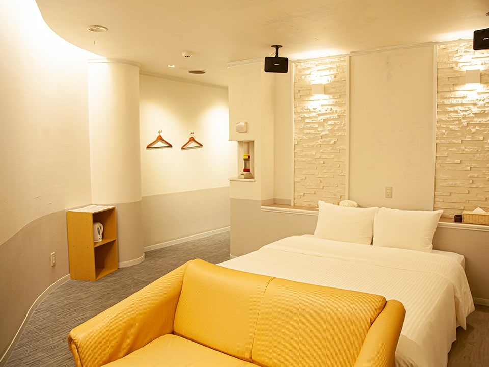 70インチの大型テレビ、ゆっくり寛げるソファやマッサージチェア、そしてジャグジーバスなど、大切なパートナーとの貴重な時間を、スパイラルリゾート最高品質の設備と内装の客室でお過ごし下さい。